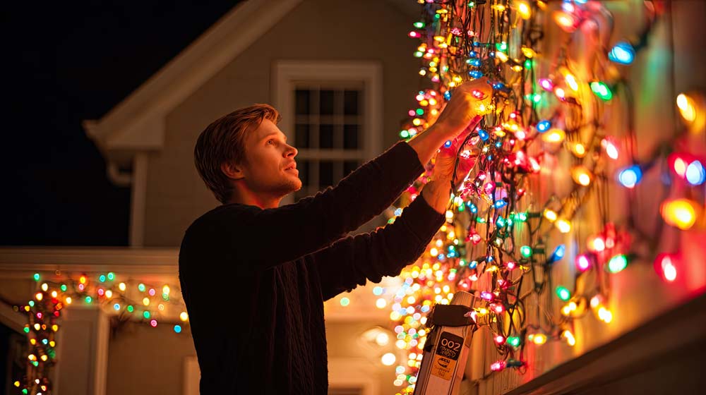 Как повесить гирлянду на дом