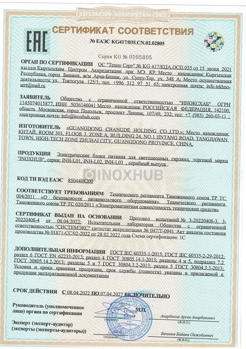 Гарантия – 12 месяцев (при условии использования с лампочками INOXHUB).