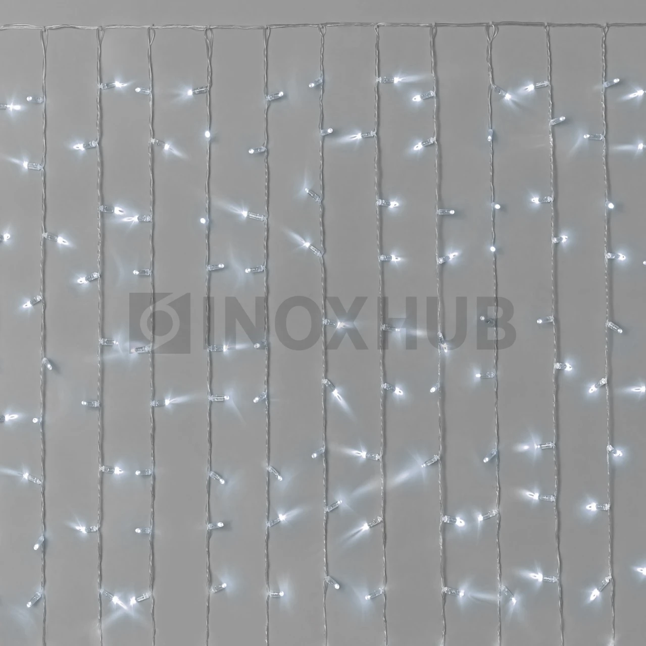 Занавес 2×1.5м, 220В, IP65, прозрачный провод, БЕЛЫЙ от «Иноксхаб» отличается от гирлянд, которые продаются на Wildberries, «ЛеруаМерлен», «Озон» и «Авито» по двум основным параметрам: