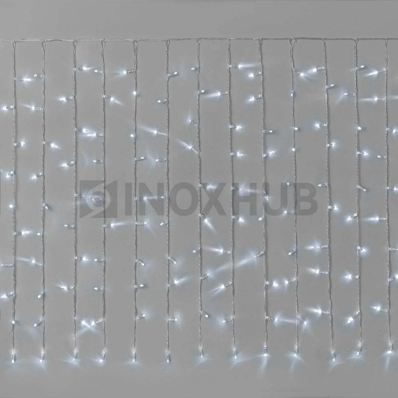 Занавес 2×1м, 220В, IP65, прозрачный провод, БЕЛЫЙ от «Иноксхаб» отличается от гирлянд, которые продаются на Wildberries, «ЛеруаМерлен», «Озон» и «Авито» по двум основным параметрам: