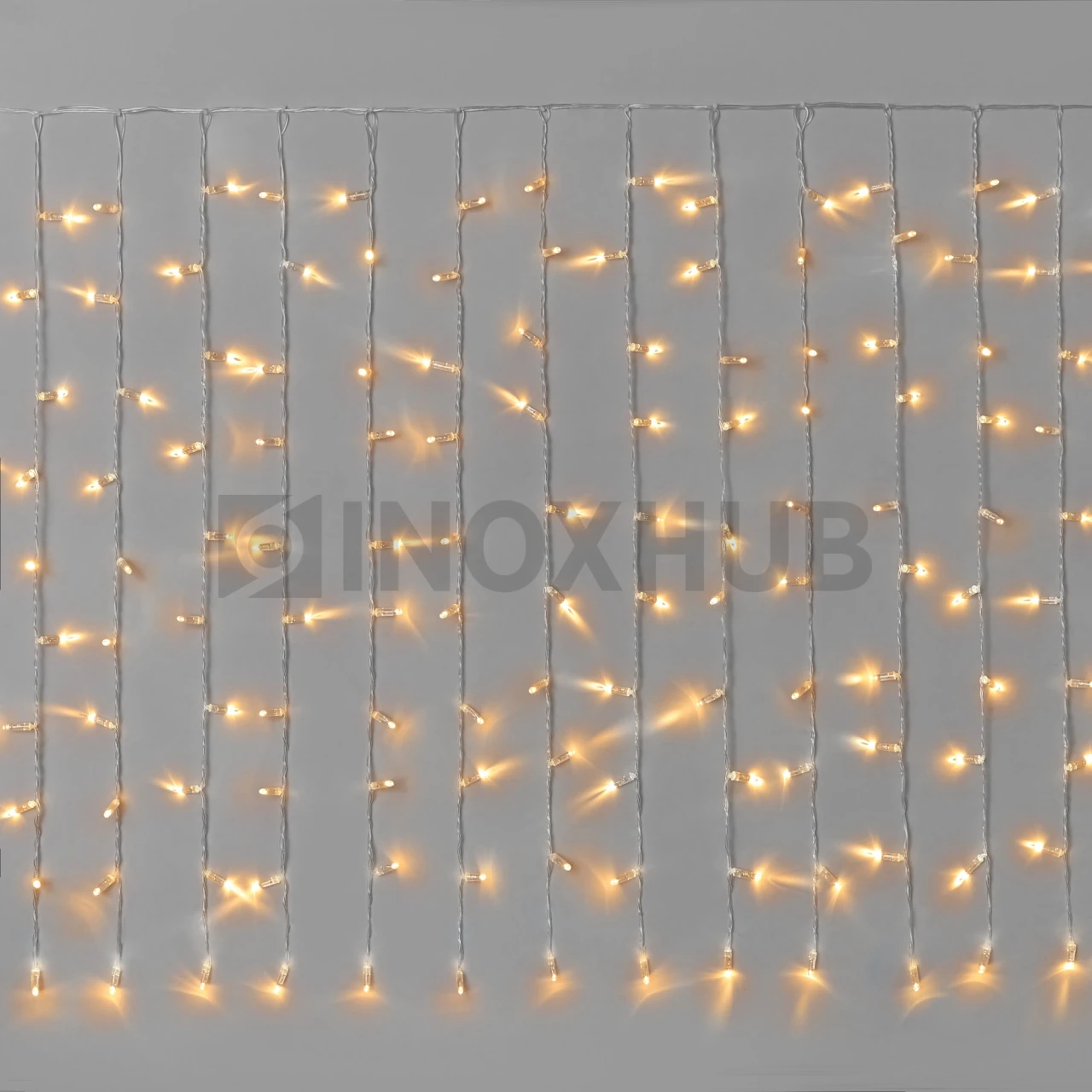 Занавес 2×1м, 220В, IP65, прозрачный провод, ТЁПЛЫЙ БЕЛЫЙ от «Иноксхаб» отличается от гирлянд, которые продаются на Wildberries, «ЛеруаМерлен», «Озон» и «Авито» по двум основным параметрам: