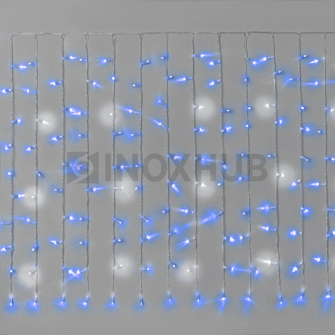 Занавес 2×1м, мерцающий, 220В, IP65, прозрачный провод, СИНИЙ от «Иноксхаб» отличается от гирлянд, которые продаются на Wildberries, «ЛеруаМерлен», «Озон» и «Авито» по двум основным параметрам: