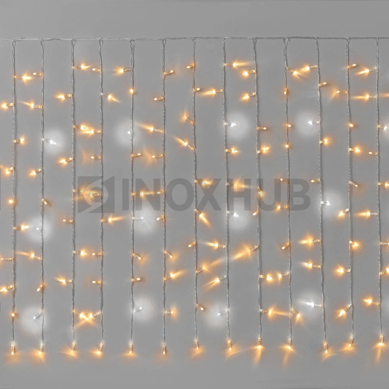 Занавес 2×1м, мерцающий, 220В, IP65, прозрачный провод, ТЁПЛЫЙ БЕЛЫЙ от «Иноксхаб» отличается от гирлянд, которые продаются на Wildberries, «ЛеруаМерлен», «Озон» и «Авито» по двум основным параметрам: