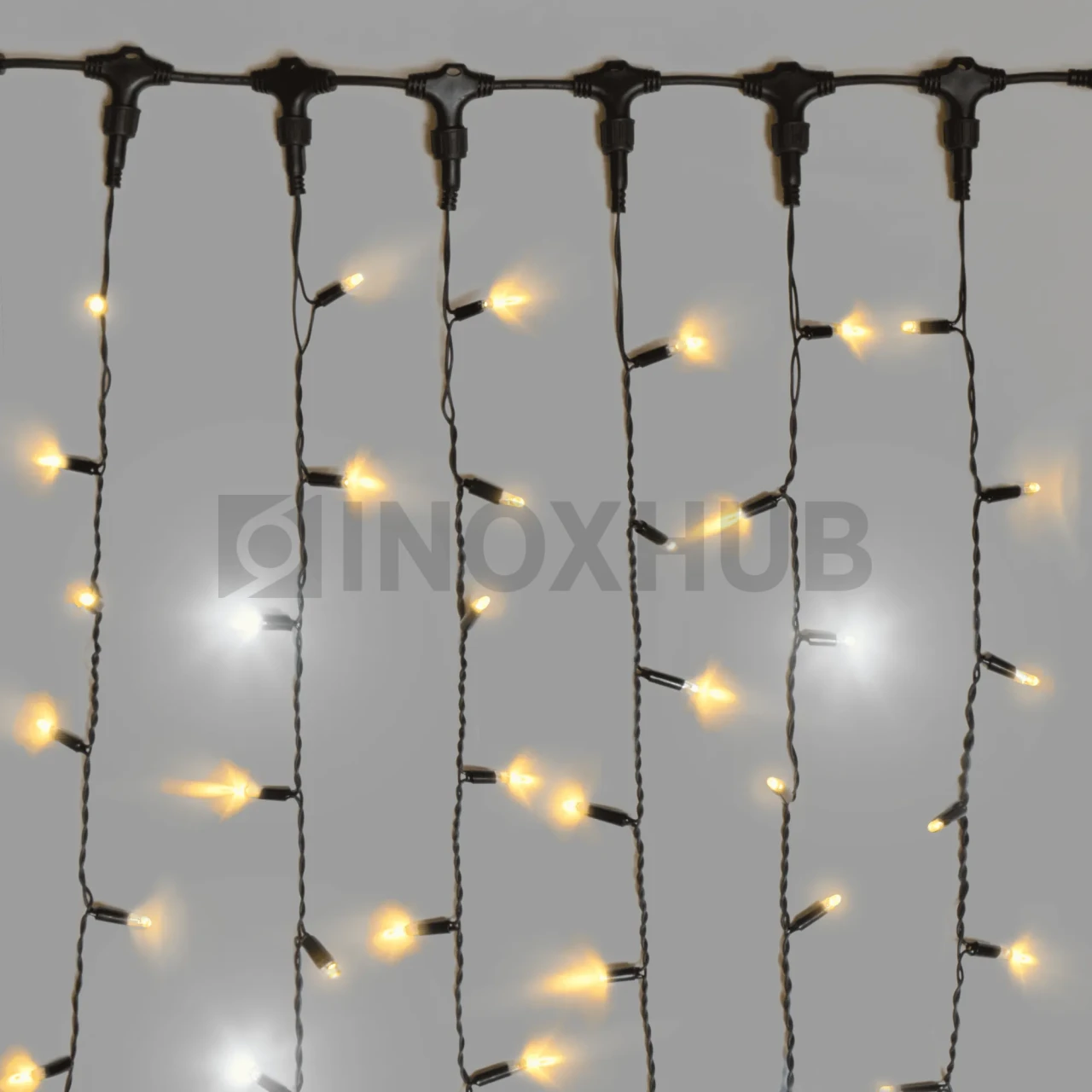 Занавес 2×9м, мерцающий, 220В, IP65, чёрная резина 2.3мм, ТЁПЛЫЙ БЕЛЫЙ от «Иноксхаб» отличается от гирлянд, которые продаются на Wildberries, «ЛеруаМерлен», «Озон» и «Авито» по двум основным параметрам: