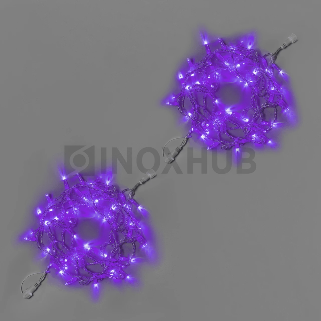 - Качество. Нить 10м, 220В, IP65, прозрачный провод, ФИОЛЕТОВАЯ изготовлена из высококачественных материалов, что делает ее более прочной и долговечной. Уличные гирлянды led рассчитаны на длительную эксплуатацию.