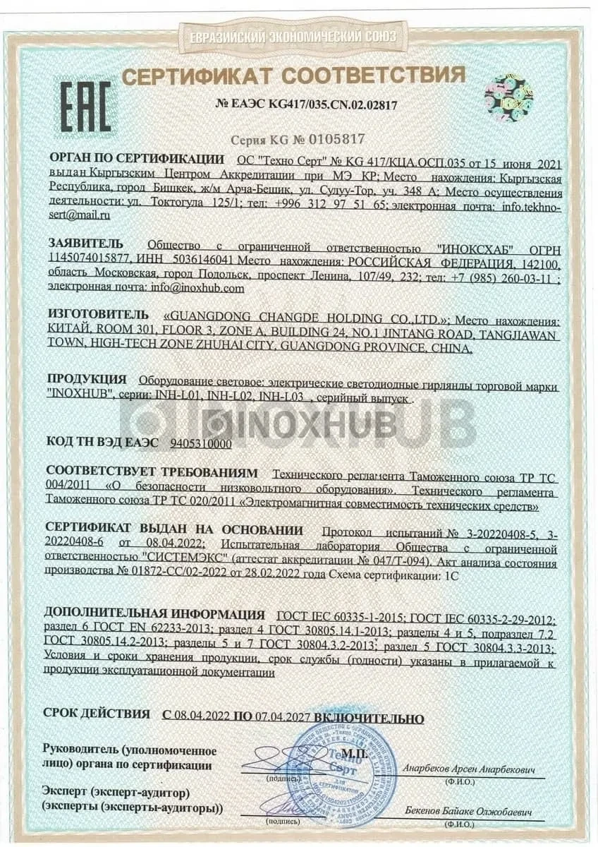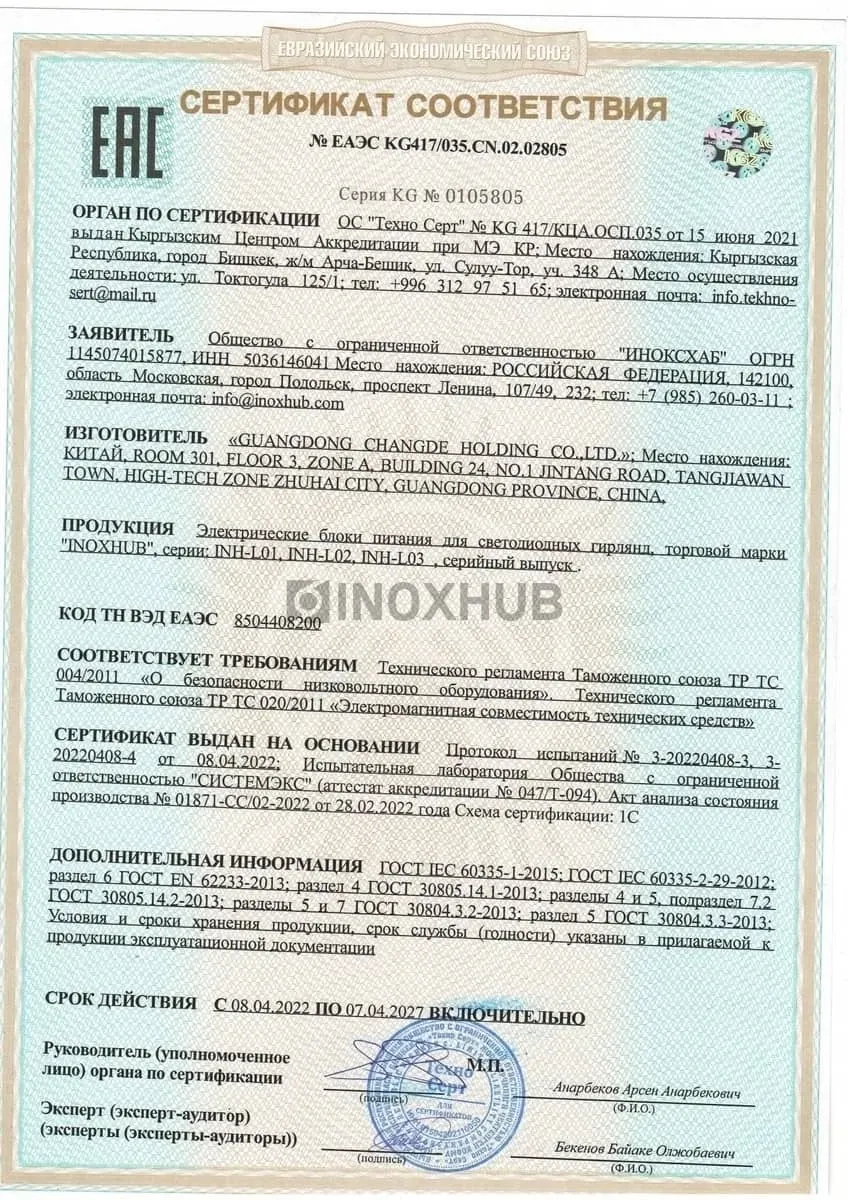Для последовательного соединения любых гирлянд INOXHUB на 2-pin (Нитей, Бахромы, Занавесов, Сеток, Стрит-Лофта) с Дюралайтом 13мм в одну цепь.