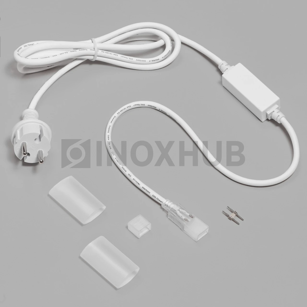 Комплект подключения (5 составляющих) для неона INH-L01-FX816-120-220V, с блоком питания 1.5А, до 50 метров, БЕЛЫЙ провод, INH-L01-220AC/DC-FX816-1,5A-W-U